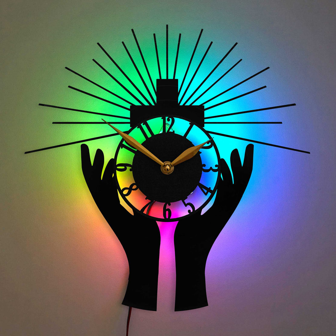 Crafted from authentic LP records, each clock is a one-of-a-kind creation that showcases the beauty and history of music. Measuring 11 inches (28 cm) in height, our clock is the perfect size for any room in your home or office. For a larger option, we also offer a 14-inch (36 cm) clock made from sturdy acrylic. The multicolor backlight version features 12 static colors and hundreds of dynamic lighting modes, all controlled via a remote. A built-in hanger on the back makes it easy to mount on any wall. The clock mechanism runs on a single AA battery (not included), while an 8-foot USB cable powers the LED lights (included and detachable). With its silent movement mechanism, our clock operates quietly, ensuring it will not disturb your peace and quiet.